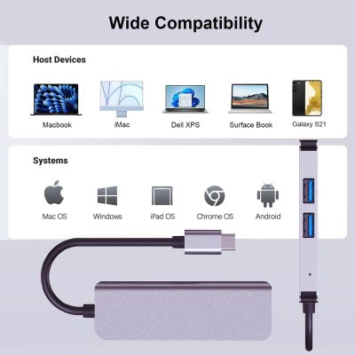 Adaptador USB-C 3 En 1 Hdtv Suport 4k+Usb2.0+Usb3