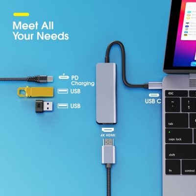 Adaptador Tipo C 4 En 1 Usb-C A Hdtv Suport 4k+2 Usb3.0+Pd