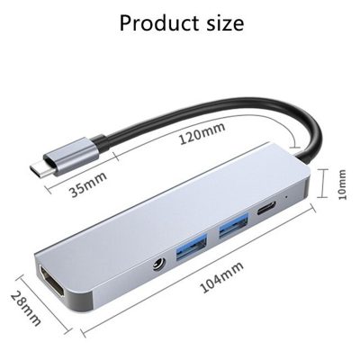 Adaptador USB-C 5 En 1 HDMI 4k+Usb2.+Usb3.0+Pd+Aux