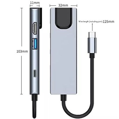 Adaptador USB-C 6 En 1 HDMI 4k + Usb3.0 + LAN + SD+TF+PD