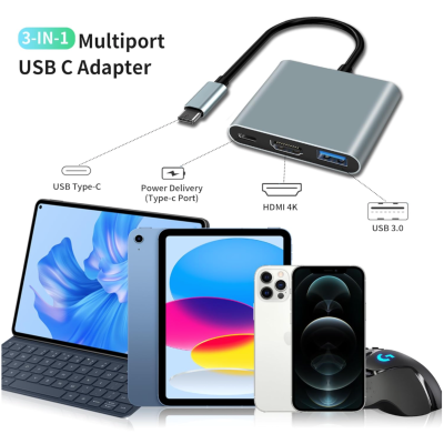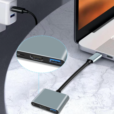 El **Adaptador Mlab Type C a HDMI + USB 3.0 A + PD** es un dispositivo multifuncional que permite expandir las capacidades de tu dispositivo con puerto **USB-C** (como laptops, tablets o smartphones) a través de tres puertos adicionales: **HDMI**, **USB 3.0 A** y **Power Delivery (PD)**.