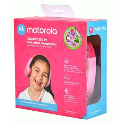 * Imagen Referencial * Audífonos para niños motorola squads 200 pk rosado escuchando con seguridad a los oídos jóvenes límite de volumen seguro para niños (hasta 85 db) flexible y duradero con doble enchufe para compartir música y micrófono incorporado al cable cojín antialérgico (sin bpa) pegatina para auriculares incluidos características: • marca: motorola lifestyle • nombre del modelo: squads 200 • año de fabricación: 2018 • peso del producto: 86,2 g • dimensiones del producto: 15,8 x 5,7 x 16 cm • pilas / baterías incluidas: no • pilas / baterías necesarias: no • descripción de la interfaz de red: 3.5 mm jack • tipo de conector: 3.5 mm Jack.