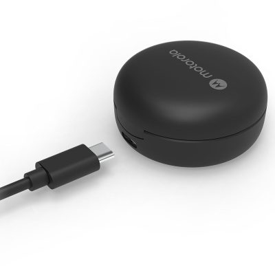 MOTO BUDS 150 son los verdaderos auriculares inalámbricos que le brindan el mejor valor para una combinación excepcional de sonido y duración de la batería. Cuenta con un total de 18 horas de tiempo de reproducción, calidad de sonido superior y llamadas con manos libres. La certificación IPX5 a prueba de agua y sudor también le permite moverse con libertad y comodidad sin preocuparse por dañarlo.