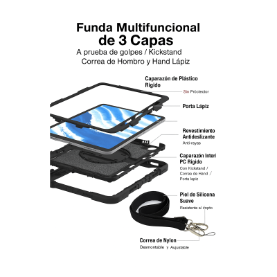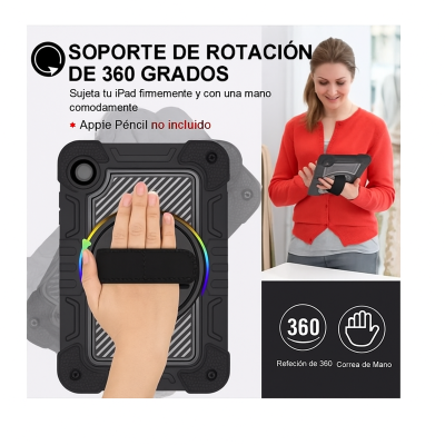 Imagen referencial Carcasa 360 reforzada para tablets a9 de 8,7 pulgadas mas lamina hidrogel Clear Protección Máxima y Estilo Inigualable Máxima Protección: Diseñada con materiales ultra resistentes, esta carcasa antigolpes absorbe impactos y protege tu tablet contra caídas, arañazos y golpes accidentales. Diseño Robusto y Elegante: Combinación perfecta de seguridad y estilo, con bordes reforzados y un acabado premium que mantiene tu tablet seguro sin sacrificar su estética. Soporte Integrado y Agarre Antideslizante: Disfruta de un soporte plegable ideal para ver videos, escribir o dibujar con total comodidad. Además, su diseño ergonómico evita resbalones para un mejor control. Ajuste Perfecto y Acceso Completo: Todos los puertos, botones y funciones de tu tablet permanecen accesibles sin necesidad de retirar la carcasa. , permitiendo su carga sin obstáculos.Correa de mano giratoria de 360° y soporte y soporte en la parte posterior, flexible en vertical y horizontal en cualquier otro ángulo, ideal para ver video, leer o enseñar, libera al máximo tu mano. Correa de mano ajustable perfectamente adecuada para todos los tamaños de manos. adultos, estudiantes, niño.