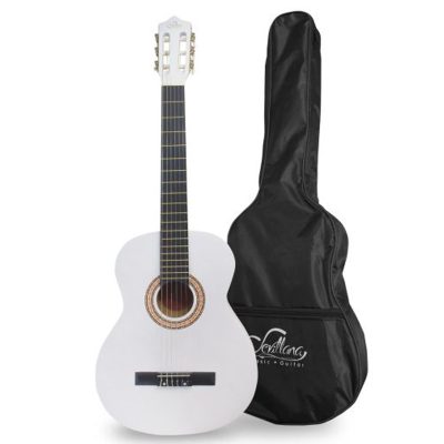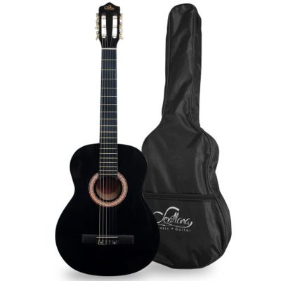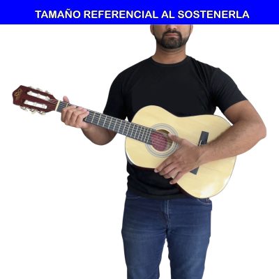 *Imagen referencial* La guitarra clásica, también conocida como guitarra criolla, guitarra flamenca, guitarra acústica o guitarra española, es un instrumento musical de la familia de los cordófonos, es decir los instrumentos que producen su sonido al hacer vibrar las cuerdas. Es un instrumento musical de cuerda pulsada, compuesto de una caja de resonancia, un mástil sobre el que va adosado el diapasón o trastero. La guitarra clásica o acústica es un instrumento de cuerdas ejecutable en casi todos los géneros musicales en la actualidad, es un instrumento caracterizado por su versatilidad, aunque siempre mantiene su sonido clásico acústico. La guitarra acústica para estudiantes de Sevillana es ideal para cualquiera que busque una guitarra atractiva que satisfaga sus necesidades de actuación en vivo, todo sin un alto coste. Con un tamaño de 34″, un puente compensado y atractivo además de un laminado profesional elevan esta guitarra a tonos más allá de su etiqueta de precio. Características: Cuello: Tilo, Tuerca: Normal, Diapasón: Tilo, Material Madera, Clavijeros: Fundidos, Cuerdas: Nylon, Incluye funda, Incluye Uña, Incluye Cuerdas de Regalo.