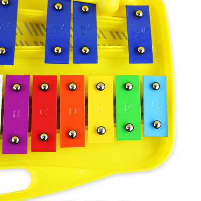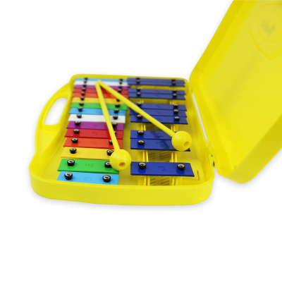 *Imagen Referencial* Este instrumento está perfectamente bien afinado para un correcto desempeño en la educación musical de los niños.25 notas con colores.Con maleta plástica para fácil transporte y mayor durabilidad. Incluye baquetas de plástico para comenzar a tocar de inmediato.Metalófono de 25 teclas de metal con 2 baquetas plasticas. Viene en una caja estilo maletin plastico de color amarillo. Ideal para uso escolar, especialmente para aquello que esten comenzando a aprender a tocar este instrumento. El metalofono tiene un sonido suave y dulce que puede ir desde graves a agudos con un tintineo inconstante. Características especificas y generales del producto Metalófono de 25 notas. Placas de aluminio, gran durabilidad. Colores grabada con las notas. Claro, brillante y tono de precisión. Atractivo instrumento educativo de percusión para los niños. Maleta plástica incorporada, liviana para un fácil transporte. Material: metal y plástico. Incluye 2 baquetas de plástico.