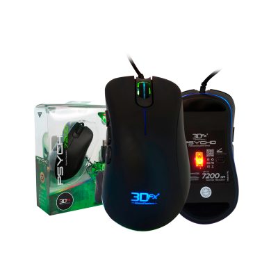 PSYCHO 7 200 DPI: Juega a ser el campeón juega como los profesionales combinando la tecnología más avanzada con una amplia gama de características personalizables. Sienta la comodidad de los teclados 3DFX los cuales proporcionan un mayor confort durante largas horas de juego. La ubicación estratégica de todos los botones proporciona un posicionamiento perfecto para los juegos sin esfuerzo. El mouse 3DFX Acid Rain permite intercambiar la precisión según el juego de modo que puedas obtener una ventaja aún mayor en la competición. CARACTERÍSTICAS: -Largo del cable: 1.5mt (aprox) – Mouse de 6 Botones. – Resolución intercambiable: 1200 / 2400 / 3600 / 4800 / dpi. – Tasa de sondeo-dinámico: hasta 1000 Hz. – Seguimiento de Velocidad: hasta 6m/sec. – Ajustes de sensibilidad mediante botón DPI. – Conector USB. – Peso: 140Grs (aprox) – Dimensiones: 20cm alto x 14 5cm ancho x 7cm profundidad. – Peso: 0.225grs