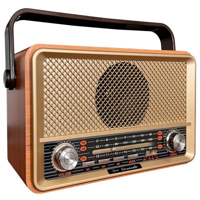 Radio clásica con diseño de los años 50’ Su música mediante la conexión Wireless BT, con toda la libertad de disfrutar de la música de forma inalámbrica, sin cables. Además, incorpora entradas de memoria USB y TF Card, para conectar y escuchar sus archivos de audio de forma directa. Características: Conexión Wireless BT. Frecuencias: FM /AM /SW. Antena telescópica. Entradas: USB / TF Card / AUX. Fuente de energía: AC 220V. Batería recargable. Conexiones de fácil acceso. En la parte posterior de la unidad encontrará los slots de conexión para carga de energía vía USB 5V y AC 220V. Además de la entrada AUX, para reproducir audio desde unidades externas.